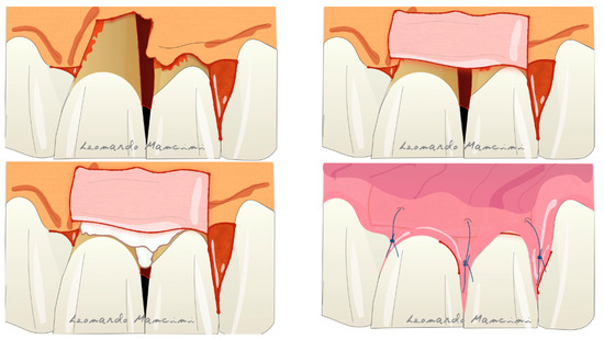 The regenerative periodontal surgery followed these steps: